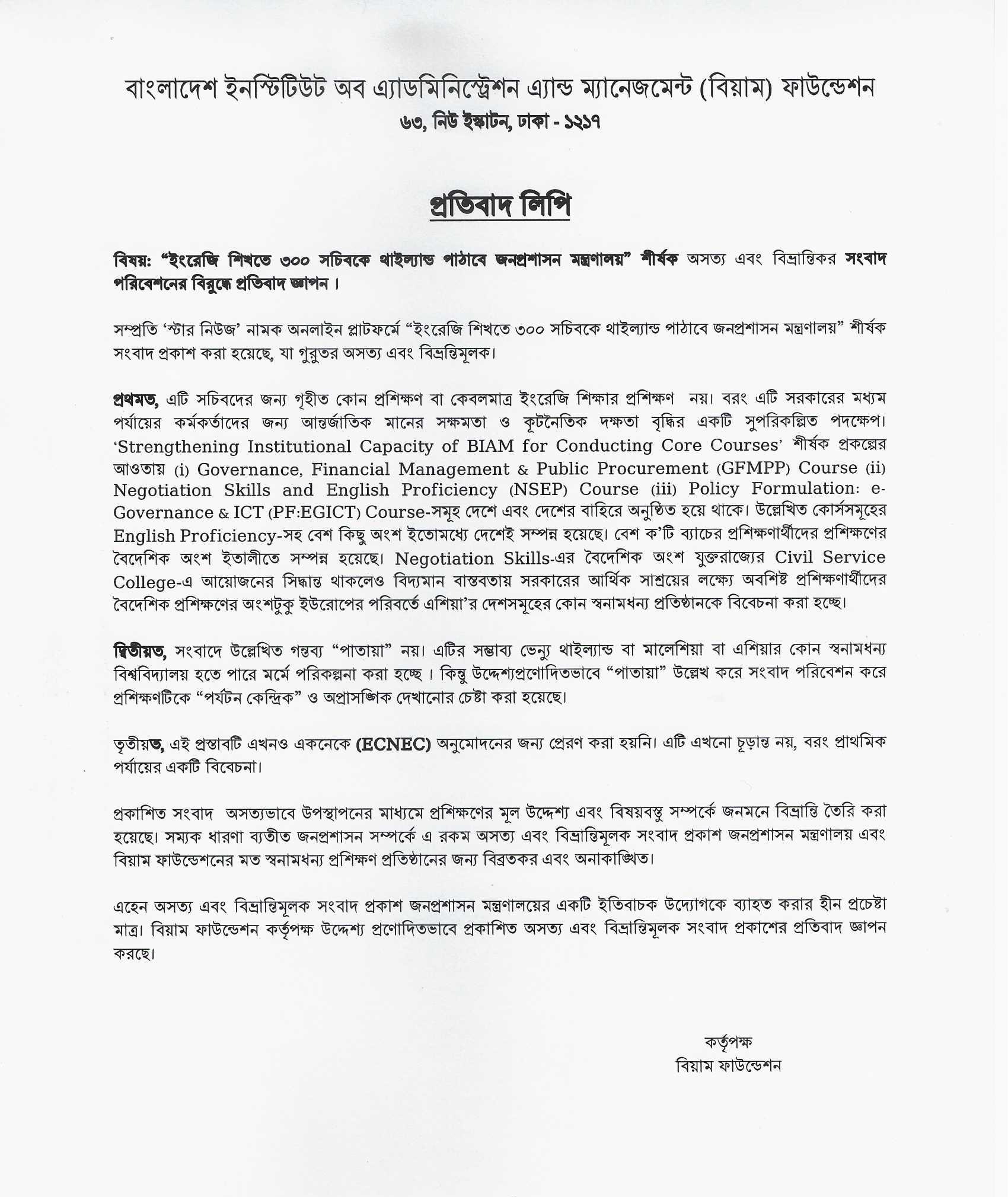 | ৭ | বিভ্রান্তিকর সংবাদ পরিবেশনের বিরুদ্ধে প্রতিবাদ জ্ঞাপন | | | ০২-০৪-২০২৬ | দেখুন |