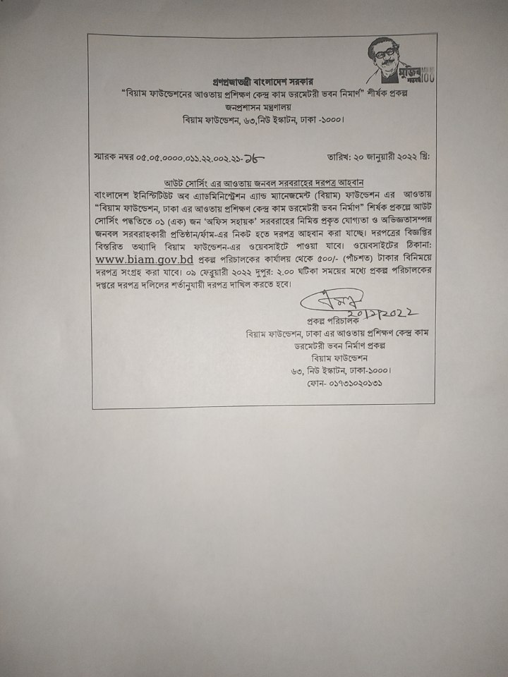 | ৮ | Terms of Reference for consultant specialist-Construction of Training Center and Dormitory under BIAM Foundation | | | | ১৮-০১-২০২২ | দেখুন |